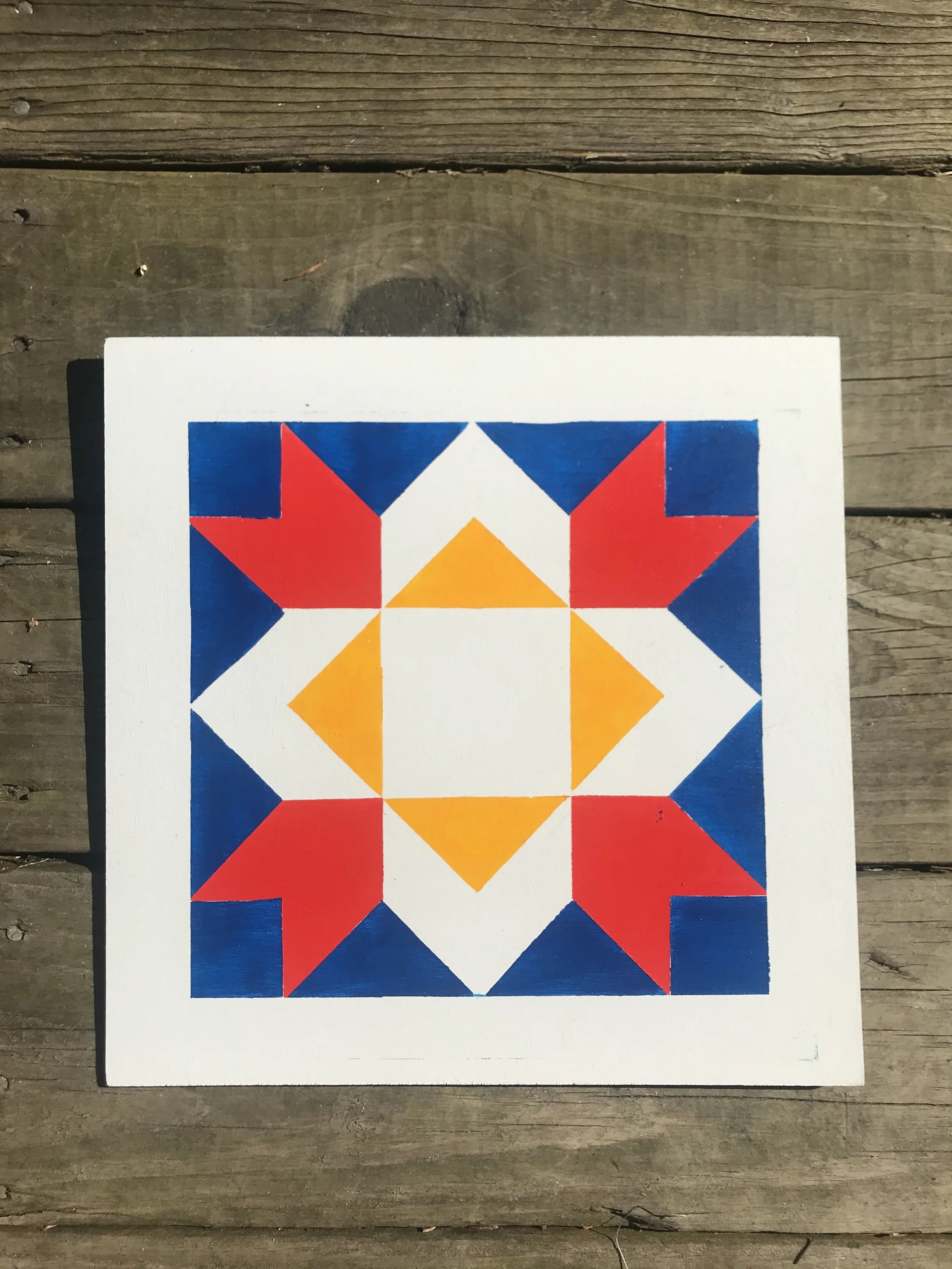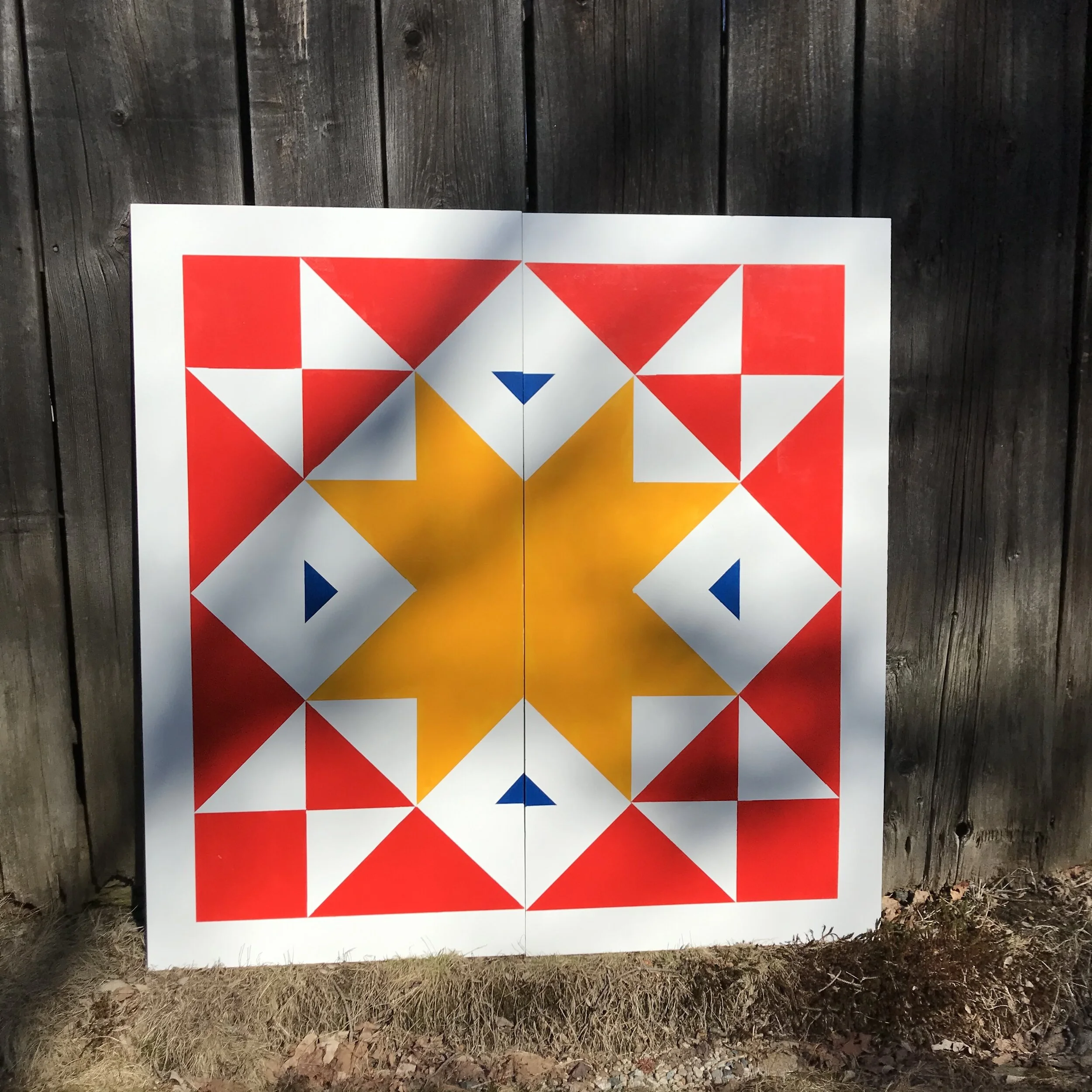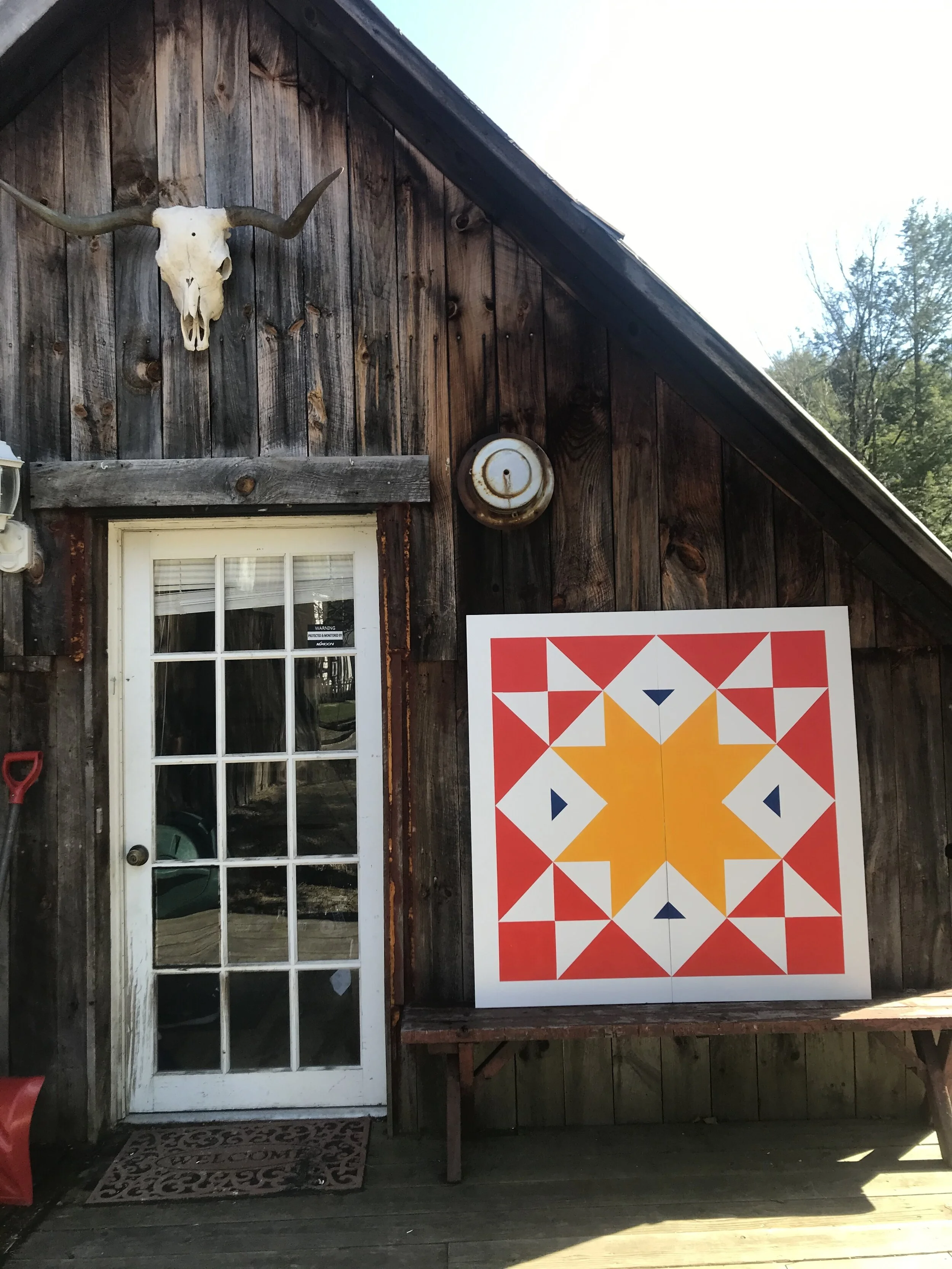 Barn quilts decorate the sides of barns throughout rural America. Barn quilt trails are driving routes mapped to see all the barn quilts in a particular state or county. They have created tourist booms in smaller rural communities by drawing attention to an otherwise overlooked region. This one is going up on a barn in rural Vermont!